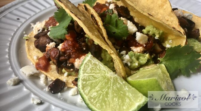Yesterday morning, I went to do groceries. It’s been so cold and rainy here in San Antonio. I mean, we are talking abut 58 degrees but here it feels like 32 degrees, ask any Texan. I wasn’t excited about getting out in this weather, but we needed food! so here I was, taking my time walking around the produce section when I see the baby bellas, (mini Portobello mushroom) and then I remember.. it’s taco Tuesday! Not that it makes any difference I mean, any day, any hour it’s a good time for tacos. Ask any Mexican, we all agree. So, my mission now (besides getting groceries) was to make it safe home (did I mention it was raining?) and make mushroom tacos. Not just any mushroom tacos but, excitingly delicious mushroom tacos!