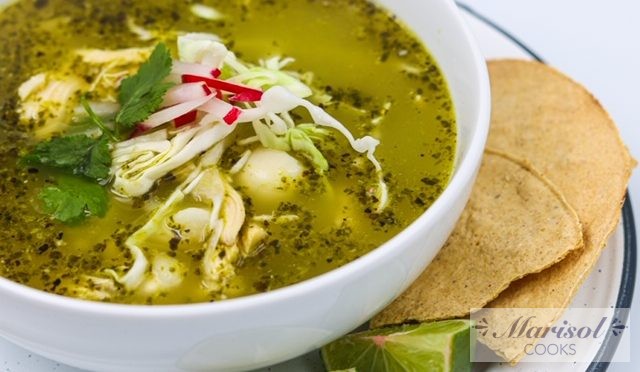 I am so excited about this one you guys. I love, love pozole! Even when I grew up eating the red version of pozole, this “Pozole Verde” has become my favorite and my go to Pozole. It is easier to make and even more flavorful than red pozole (I hope the pozole patrol don’t come get me). I started by making the chicken broth with bone-in chicken breast, onion, garlic and spices. The green in this pozole comes from roasted poblano peppers, tomatillos, jalapeños and cilantro. It packs a punch but you can always modify it to your taste buds. I shredded the chicken breast and added it to the broth along with some hominy. To serve it, I prepare shredded cabbage and radishes, finish it with a big squeeze of lime and baked tostadas. I am getting hungry for it all over again!.