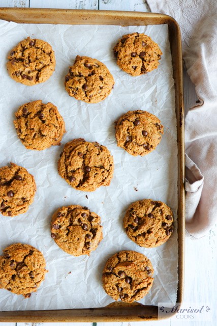 A dear friend of mine used to make similar cookies. I remember because she told me the same thing…”They’re easy to remember because they call for 1 of each, 1 cup peanut butter, 1 egg, 1 teaspoon baking soda and 1 cup of sugar” I thought about her a lot while I was making these cookies. I tweak her recipe a little bit by using coconut sugar and adding the chocolate chips. I am sure she would’ve loved my version. I miss her dearly.