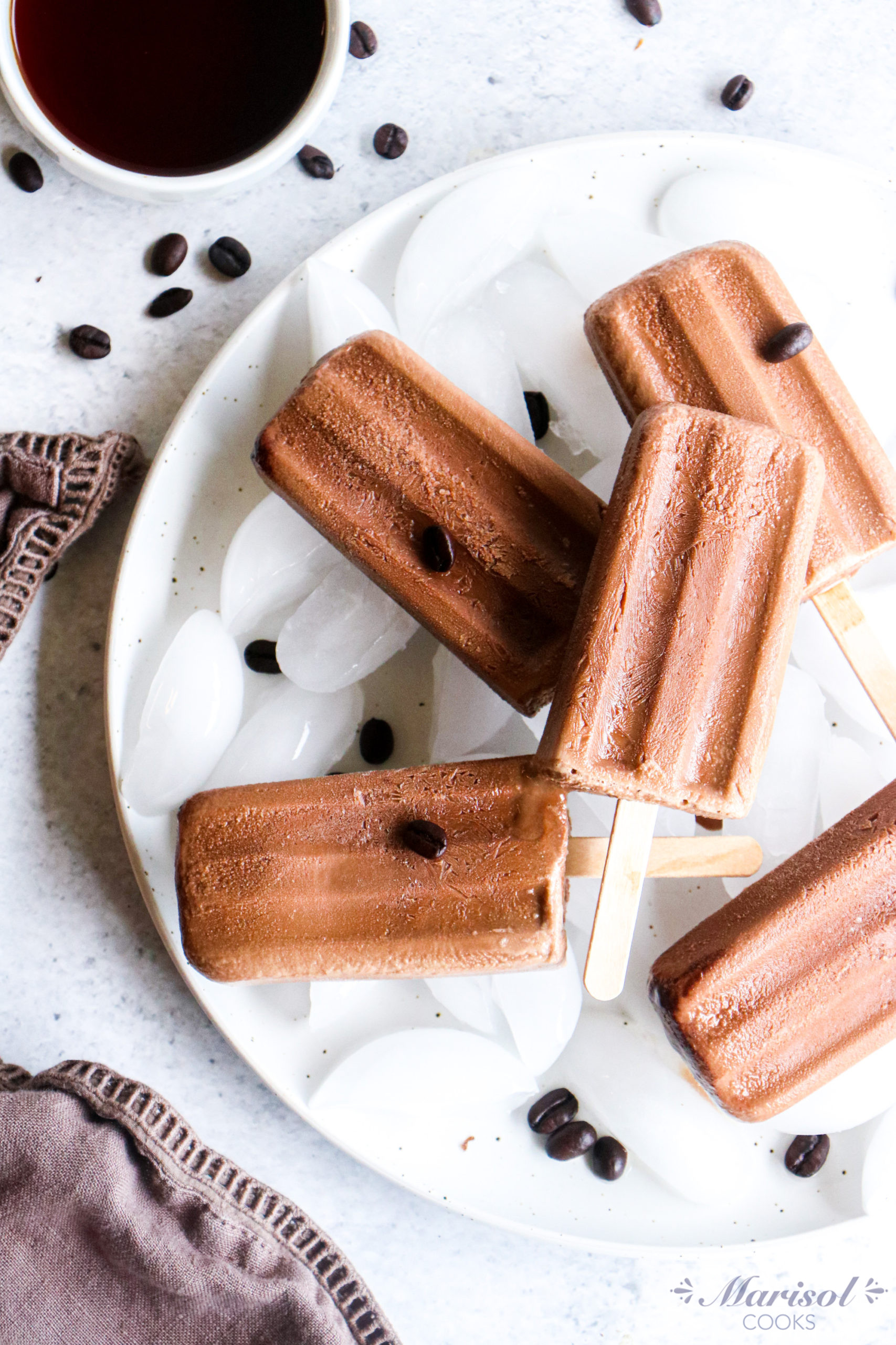 Today, I bring you the perfect afternoon snack/pick me up for these hot, hot summer days! The sweetened condensed milk and cocoa powder make these ice pops creamy,