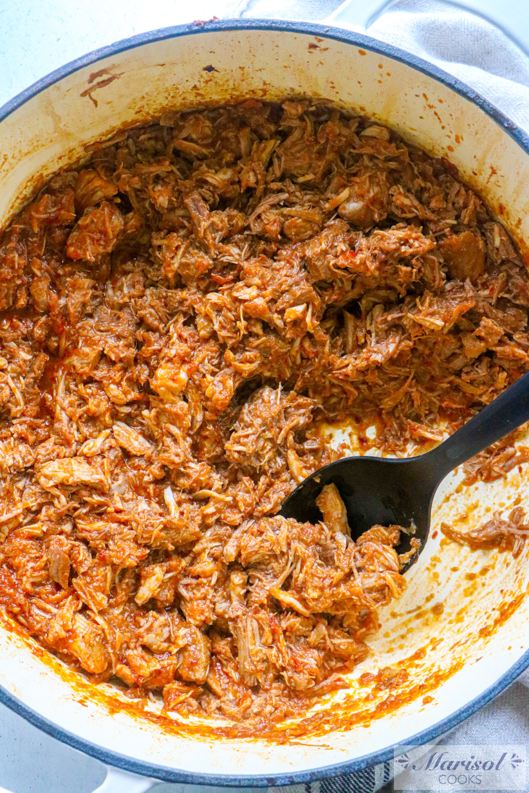 I rarely make fried food but when I do, I go all the way and these chimichangas are so worth the indulgence! Shredded chicken cooked in a rich